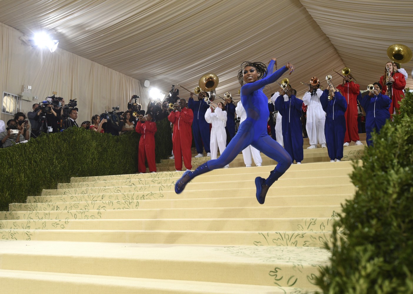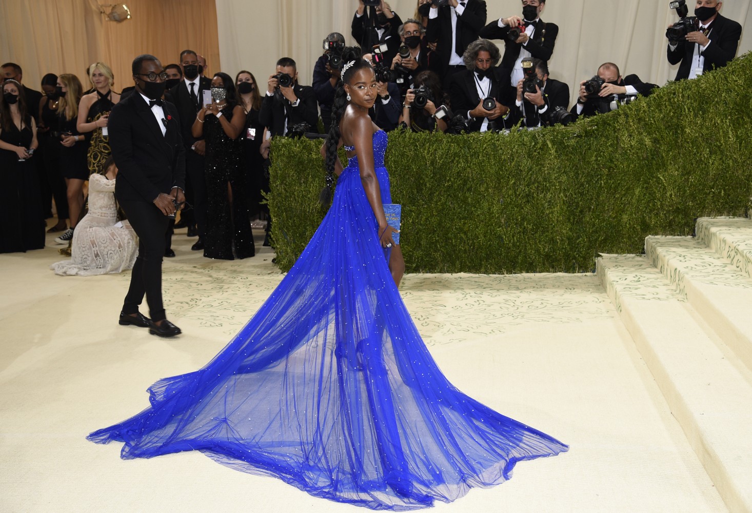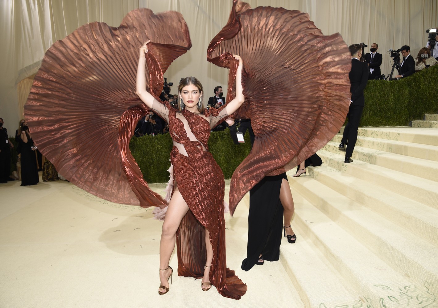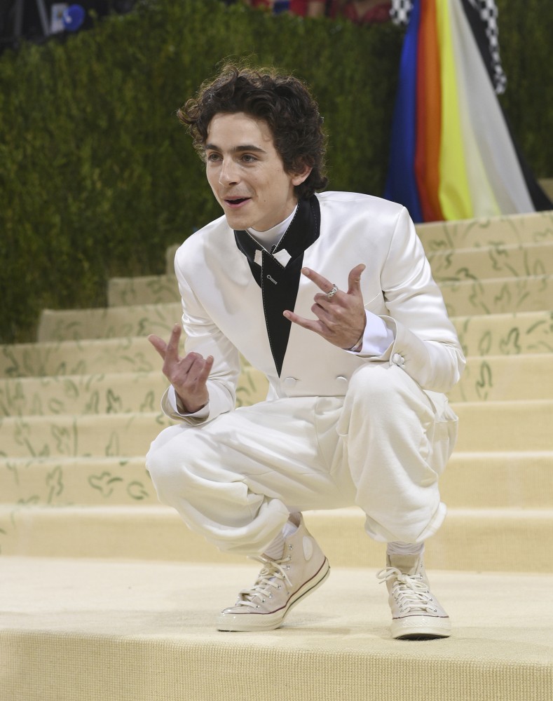 NEW YORK (AP) — For what was billed as a “mini Met Gala,” Monday’s fundraiser at New York’s Metropolitan Museum of Art brought out big names and bold fashion. Billie Eilish went full glam at Monday’s Met Gala in an Old Hollywood peachy ball gown by Oscar de la Renta with a full train and plunging neckline. Amanda Gorman was breathtaking in custom Vera Wang with a diamond laurel wreath in her hair, while another co-host, Timothée Chalamet went with casual white silk joggers, short jacket and matching Converse sneakers. Rihanna, ever the Met Gala queen, showed up late in a huge black Balenciaga look. With a theme of American independence, celebrity looks are as far flung as usual.