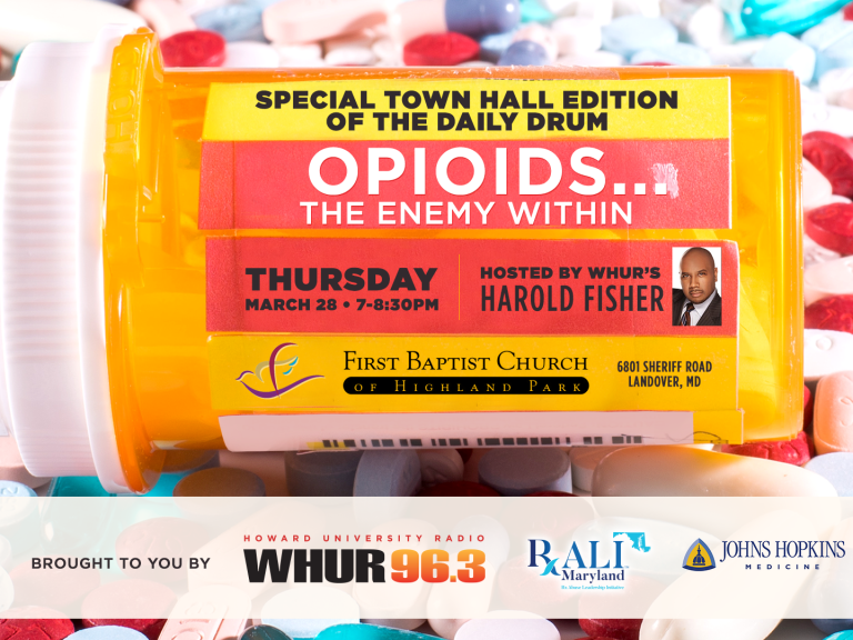 WHUR Special Town Edition of the Daily Drum Opioids the Crisis Within will be held Thursday, March 28thfrom 7pm to 8:30pm at the First Baptist Church of Highland Park @ 6801 Sheriff Road in Landover. www.whur.com