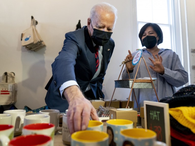 WASHINGTON (AP) — President Joe Biden is pledging to chat more with everyday Americans and followed through Tuesday by visiting a gift shop and ice cream store in Washington’s Capitol Hill neighborhood. Biden went shopping at Honey Made. It’s a boutique that opened up last year amid the pandemic. The president chose a hoodie for his grandson and a necklace for his wife, Jill. He then picked up a mug with a picture of Vice President Kamala Harris on it. The trip occurred as Biden tries to improve feelings about an economy facing stiff inflation. The White House says it has provided $400 billion in aid to more than 6 million small businesses.